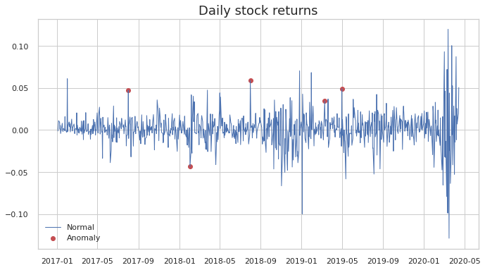 Before continue, as an example we are going to identify outliers from Apple’s stock returns using the 3σ approach