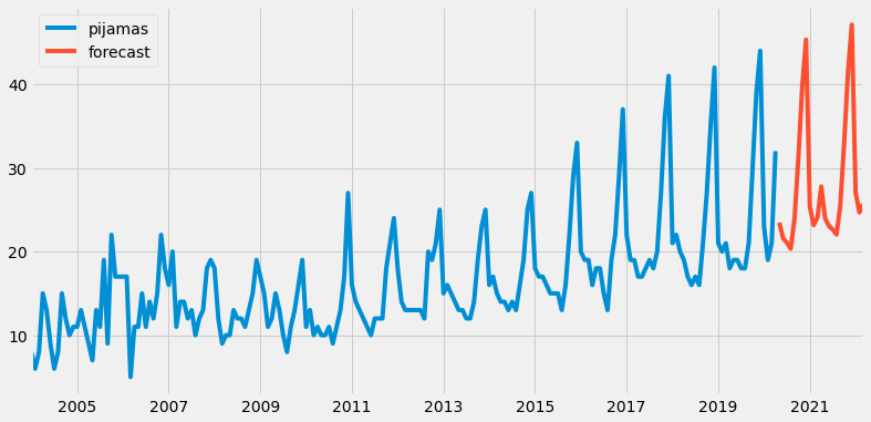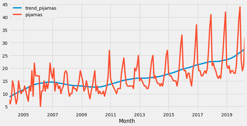 Statsmodel library can easily get the trending for “pajamas” series.