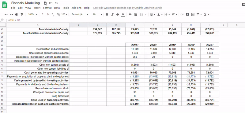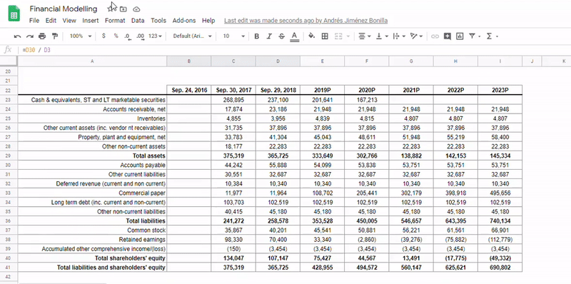 The aim of this project is develop a 3-statement model completely inputting historical data and assumptions to project out financial statements from APPLE INC. using Python and Google Sheets.